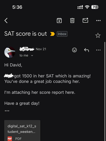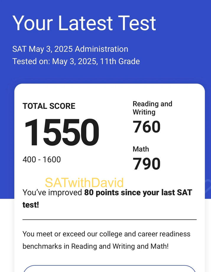 I’m proud of every student I work with and the progress they make. This section highlights a few students who earned scores of 1500 or higher last year, because those results are often asked about. Strong improvements happen at every score level, and each student’s goals are different.